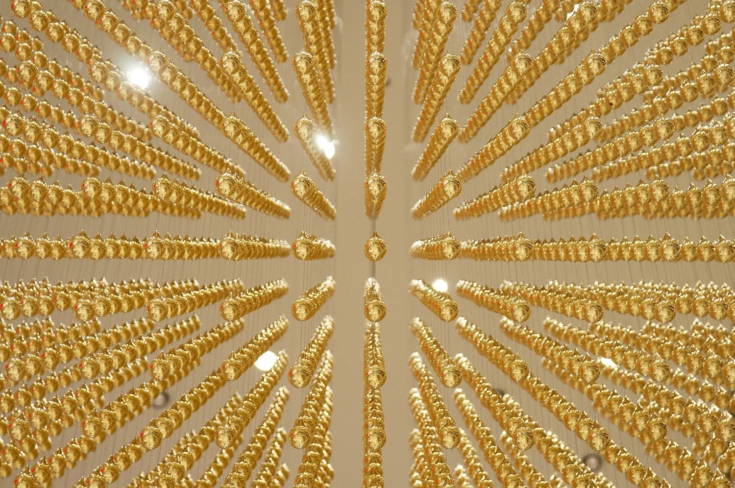จากการเดินทางของท้าวทองกีบม้า สู่แรงบันดาลใจของศิลปะร่วมสมัย “ทองหยอด” ประติมากรรมทองเหลืองรูปทรงทองหยอดที่เคยถูกนำไปแสดง ณ งานเทศกาลศิลปะนานาชาติที่ยิ่งใหญ่ที่สุดในโลกศิลปะอย่าง Venice Biennale มาแล้ว ถูกนำมาจัดแสดง ณ โถงทางเดินกลาง ชั้น M ไอคอนสยาม สร้างสรรค์โดยคุณอริญชย์ รุ่งแจ้ง เป็นงานศิลป์ที่สามารถพาเราไปสำรวจจุดเชื่อมโยงที่ผสมผสานการทับซ้อนของวัฒนธรรมอย่างลงตัว แฝงเร้นเรื่องราวประวัติศาสตร์ทั้งในแง่สังคม และวัฒนธรรม โดยศิลปินได้เลือกใช้วัสดุทองเหลือง และนำไปผลิตที่โรงงานหล่อพระ โดยทุกกระบวนการที่เลือกใช้ได้สะท้อนตัวตนแบบไทยอย่างลงตัว