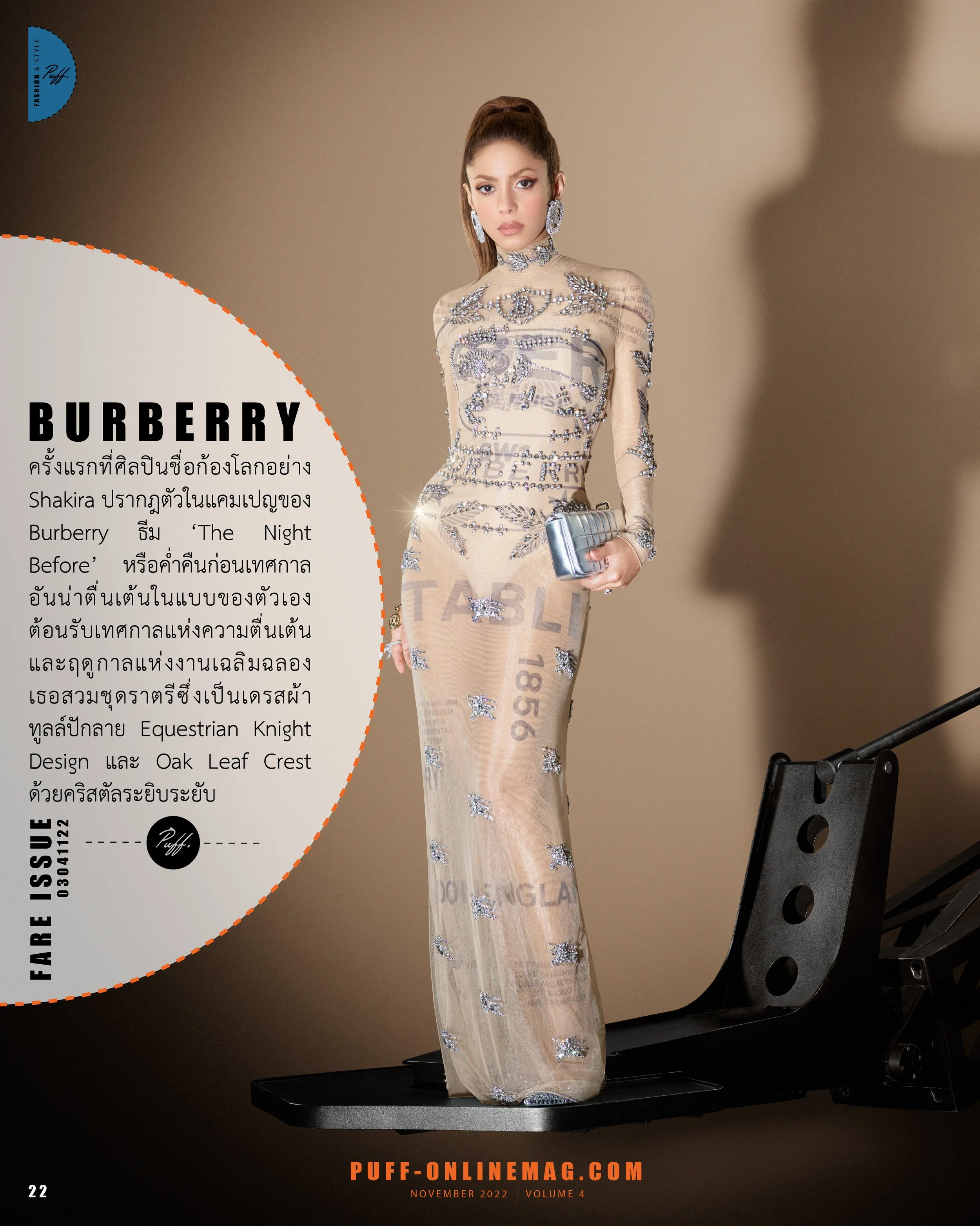เป็นครั้งแรกที่ศิลปินชื่อก้องโลกอย่าง Shakira และ Burna Boy ปรากฎตัวในแคมเปญของ Burberry โดยทั้งคู่ต่างถ่ายทอดแคมเปญธีม ‘The Night Before’ หรือค่ำคืนก่อนเทศกาลอันน่าตื่นเต้น ในแบบของตัวเอง โดยภาพยนตร์แคมเปญนี้เริ่มจาก Burna Boy เดินผ่านของขวัญลาย Burberry House Check จำนวนมากที่กองอยู่ที่พื้น พร้อมหิมะที่กำลังตกลงมาอย่างเบาบาง ฉากต่อมาก็พบกับเหล่านักดนตรีที่กำลังบรรเลงบทเพลงแห่งฤดูกาล ปิดท้ายด้วย Shakira ยืนสง่าอยู่บนโต๊ะอาหารที่กลายเป็นรันเวย์ของ Burberry นับว่าเป็นที่สุดแห่งการแสดงออกถึงตัวตน และเป็นการถ่ายทอดความรื่นรมย์แห่งช่วงเทศกาลในรูปแบบใหม่ไม่เหมือนใคร