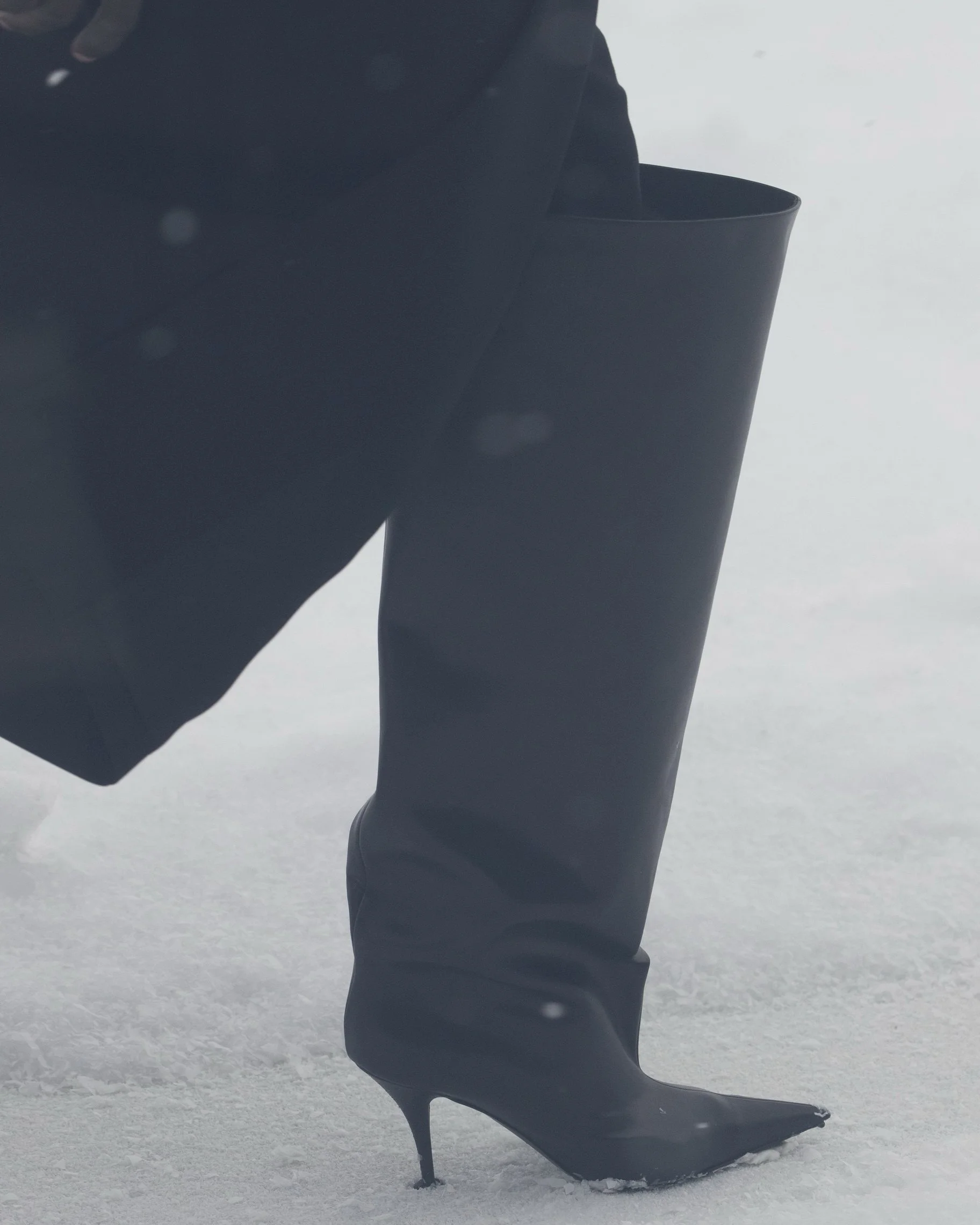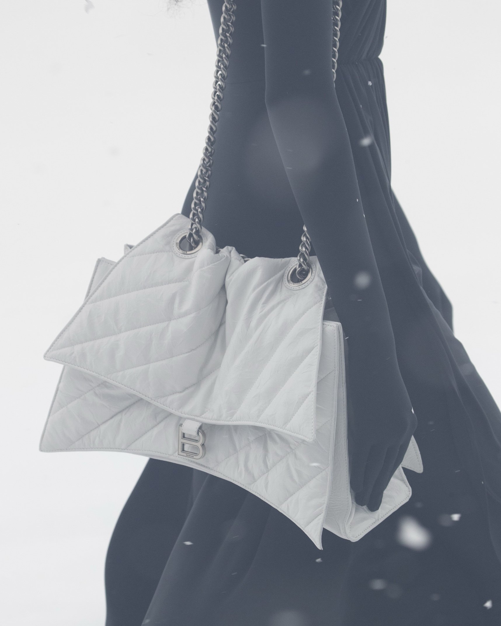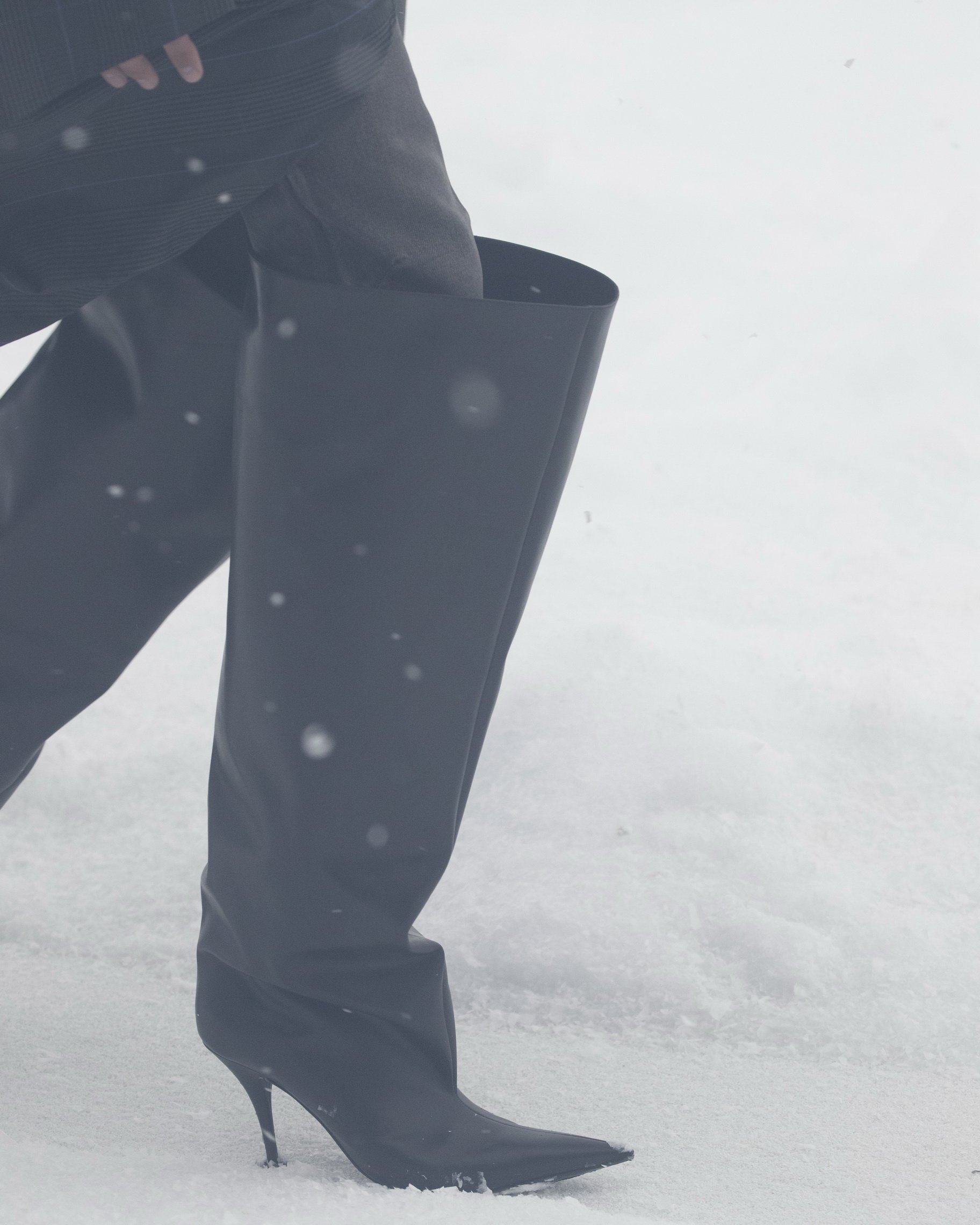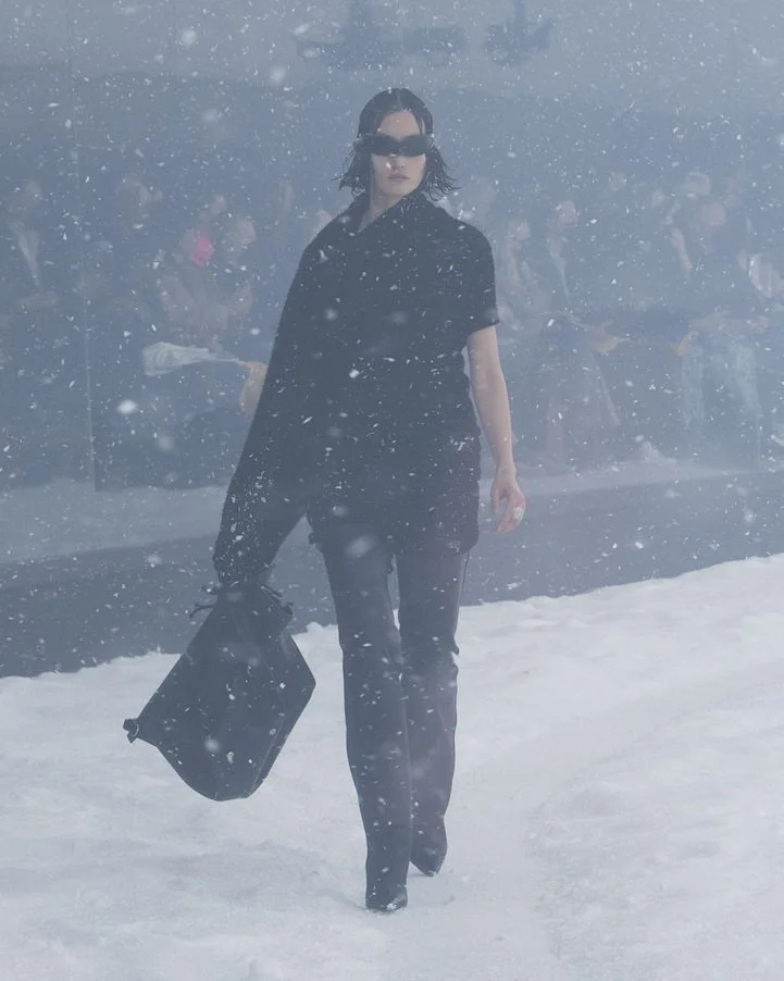 Balenciaga Winter 22 โชว์ได้นำเสนอบนทุ่งสีขาวโพลนปกคลุมด้วยหิมะ ครอบด้วยกระจกนิรภัย ในโลกแห่งความจริงที่ถ่ายทอดสดแบบสามมิติด้วยมุมมอง 360° ทำให้เราสามารถสังเกตลักษณะของฤดูกาลนี้ในมุมมองที่เราเคยรู้จัก