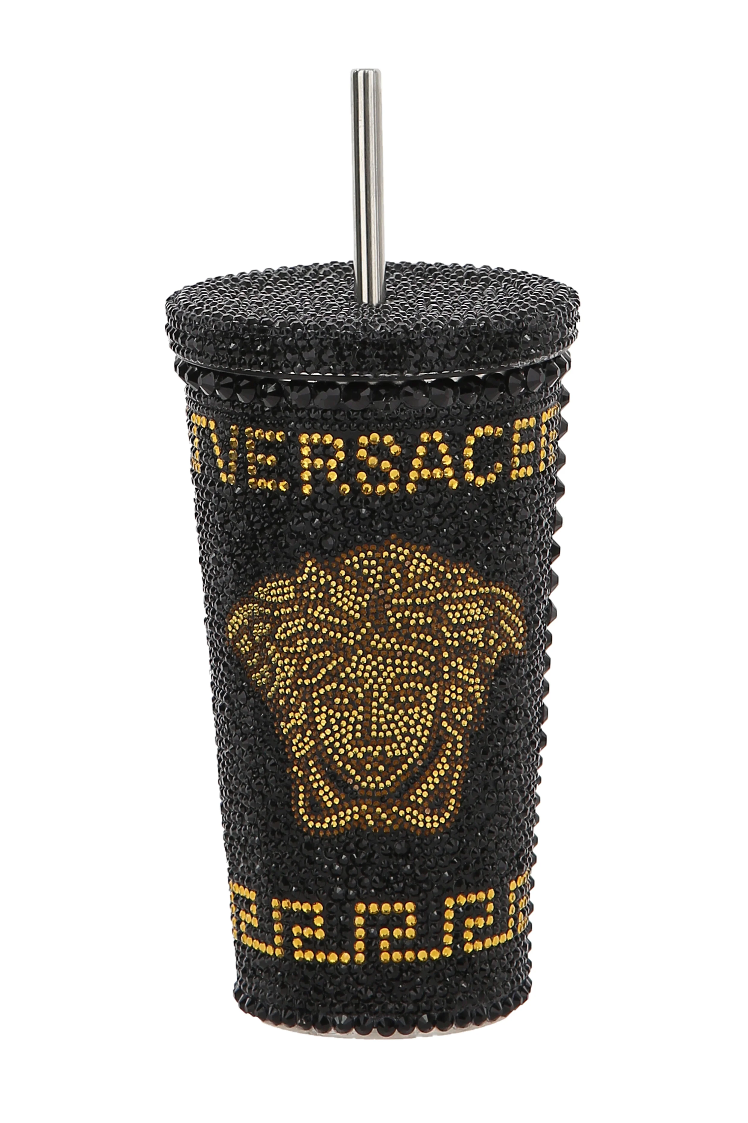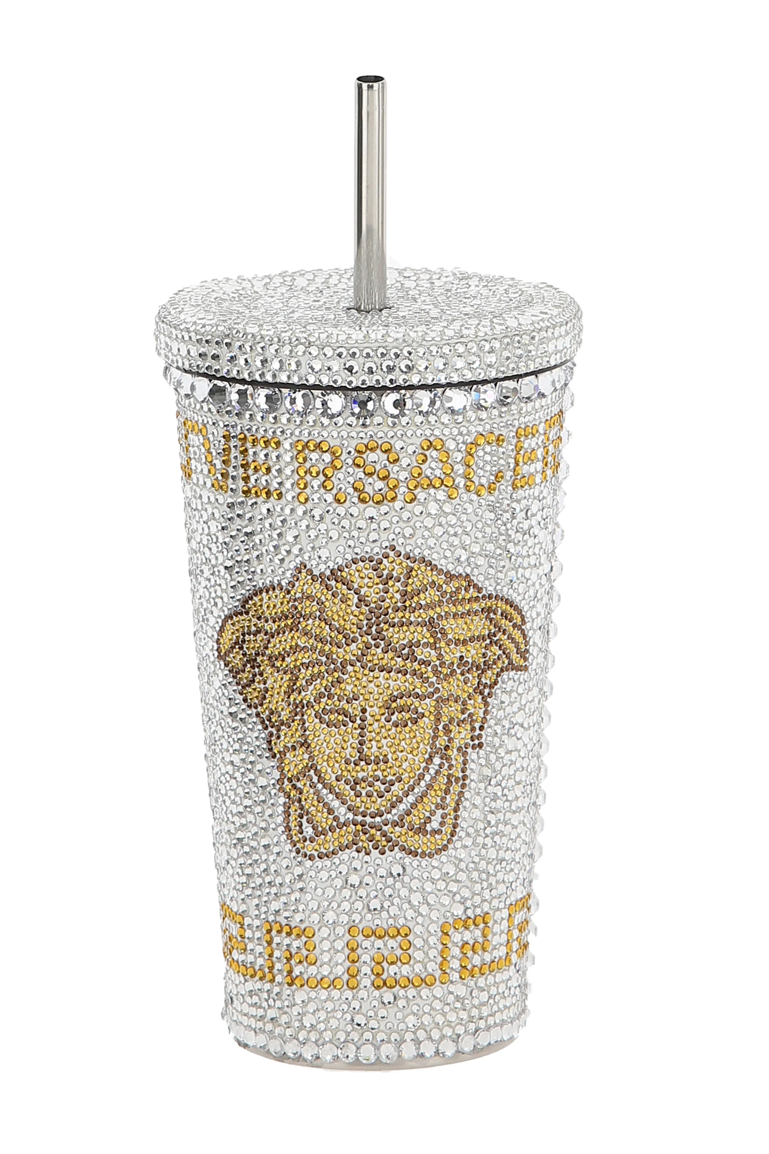 นอกจากนี้ยังมีไอเท็มอย่างแก้วน้ำที่เพิ่มความหรูหราด้วยการประดับคริสตัล สะท้อนความเป็นสาวก Versace อย่างลงตัว