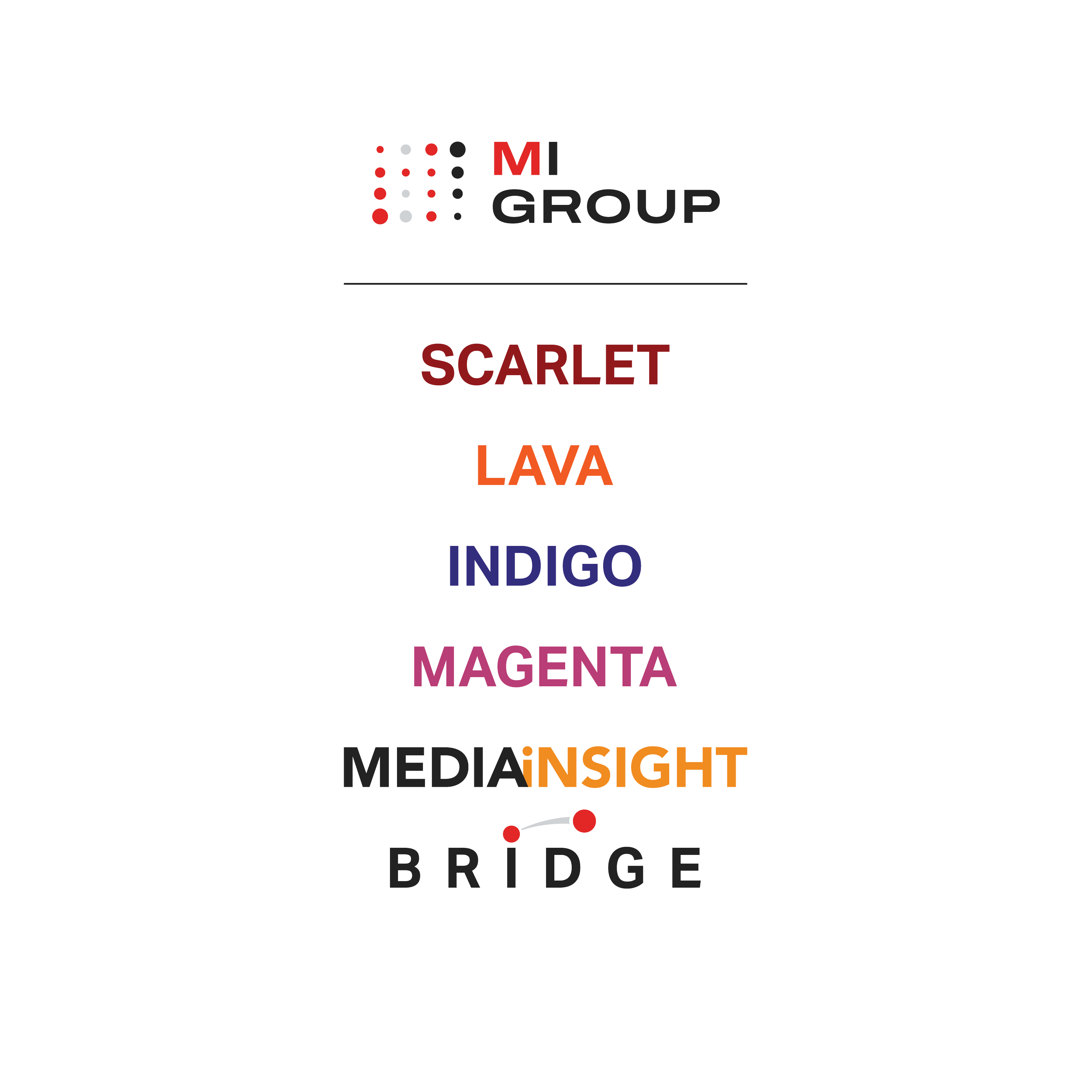 MI GROUP หรือ Media Intelligence Group เป็นมีเดียเอเจนซี่ชั้นนำของประเทศไทย ในเครือ Hakuhodo และ Far East Fame Line DDB ที่ดำเนินธุรกิจในการเป็นมีเดียเอเยนซีและที่ปรึกษาทางการตลาดมานานกว่า 20 ปี ปัจจุบัน โครงสร้างทางธุรกิจของ MI Group ประกอบด้วย Business Team ทั้ง 5 ได้แก่ Scarlet, Lava, Indigo, Magenta และ Media Insight ทำหน้าที่ในการวางแผนกลยุทธ์สื่อสารการตลาดให้กับลูกค้า (Advertisers) โดยมี MI Bridge คอยให้คำแนะนำ และทำหน้าที่เป็น Solution Providers ให้กับองค์กร หรือแบรนด์ที่ต้องการขยายตลาดไปยังต่างประเทศ