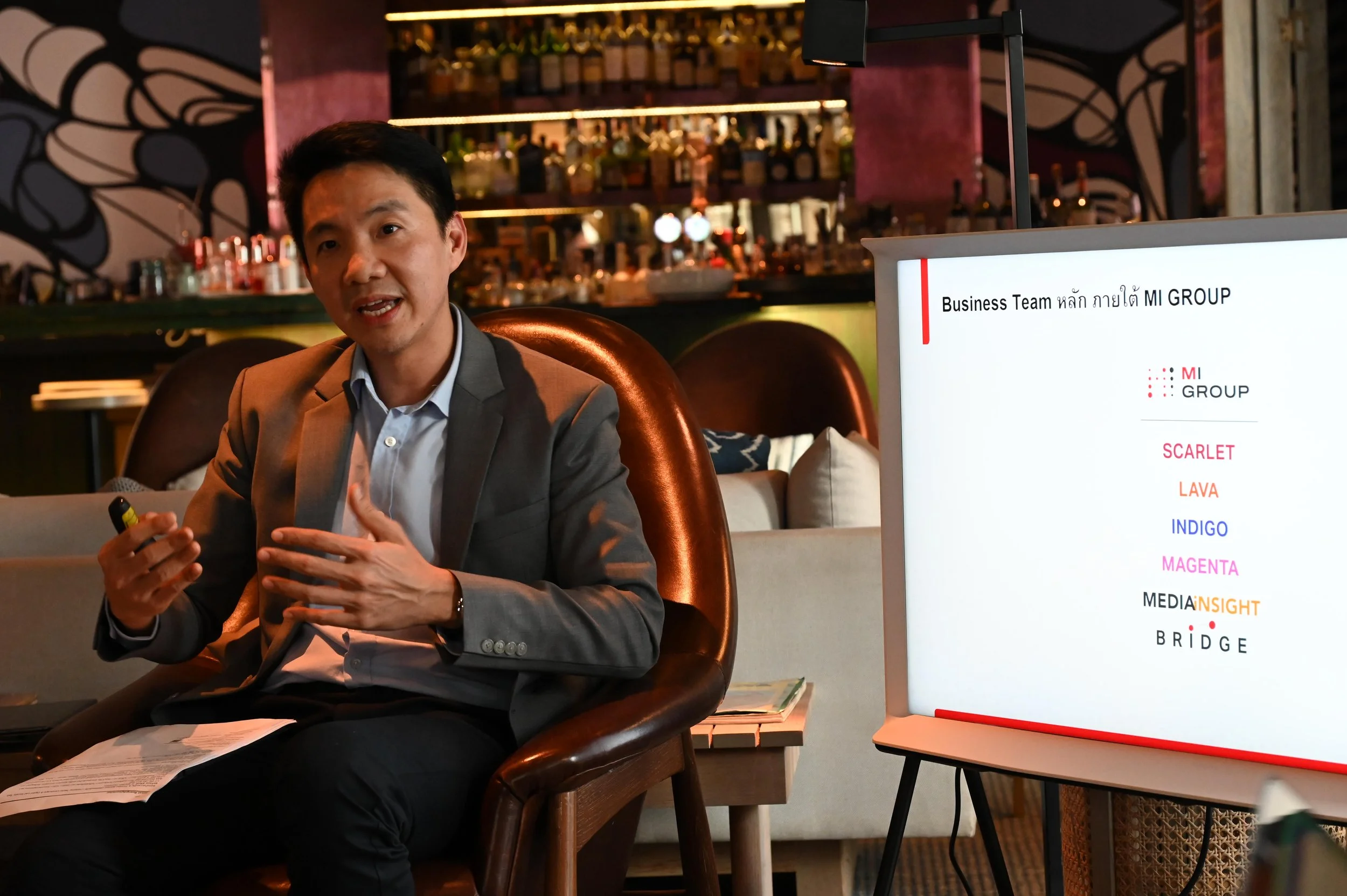 “ปัจจุบัน Positioning ของ MI GROUP คือการเป็น Solution Providers ให้กับลูกค้า ไม่ใช่แค่ในมุมของการวางแผนกลยุทธ์สื่อและราคาสื่อ แต่เรายังเป็น Trusted Advisor ให้กับลูกค้าในมุมที่รอบด้านมากขึ้น เช่น การสื่อสารทางการตลาดในรูปแบบที่สอดคล้องกับภูมิทัศน์สื่อที่เปลี่ยนไปอย่างมาก (Changing Media Landscape) เช่น การทำ Branded Content, การทำ Affiliate Marketing กับ KOLs (Key Opinion Leaders หรือ Influencers), การเริ่มต้นจากการนับ1 ร่วมกันในการออกแบบ และการผลิต Contents ที่ตอบโจทย์กลุ่มเป้าหมายและลูกค้า (Advertisers) เพื่อผลลัพธ์ที่ดีที่สุดกับทุกฝ่าย (Content Development & Content Ownership), การช่วยหาข้อมูลในตลาดใหม่ๆ ทั้งในและต่างประเทศ ทั้งในด้านการตลาด สื่อสารการตลาด และการกระจายสินค้า ( New Distribution Channel) เป็นต้น”