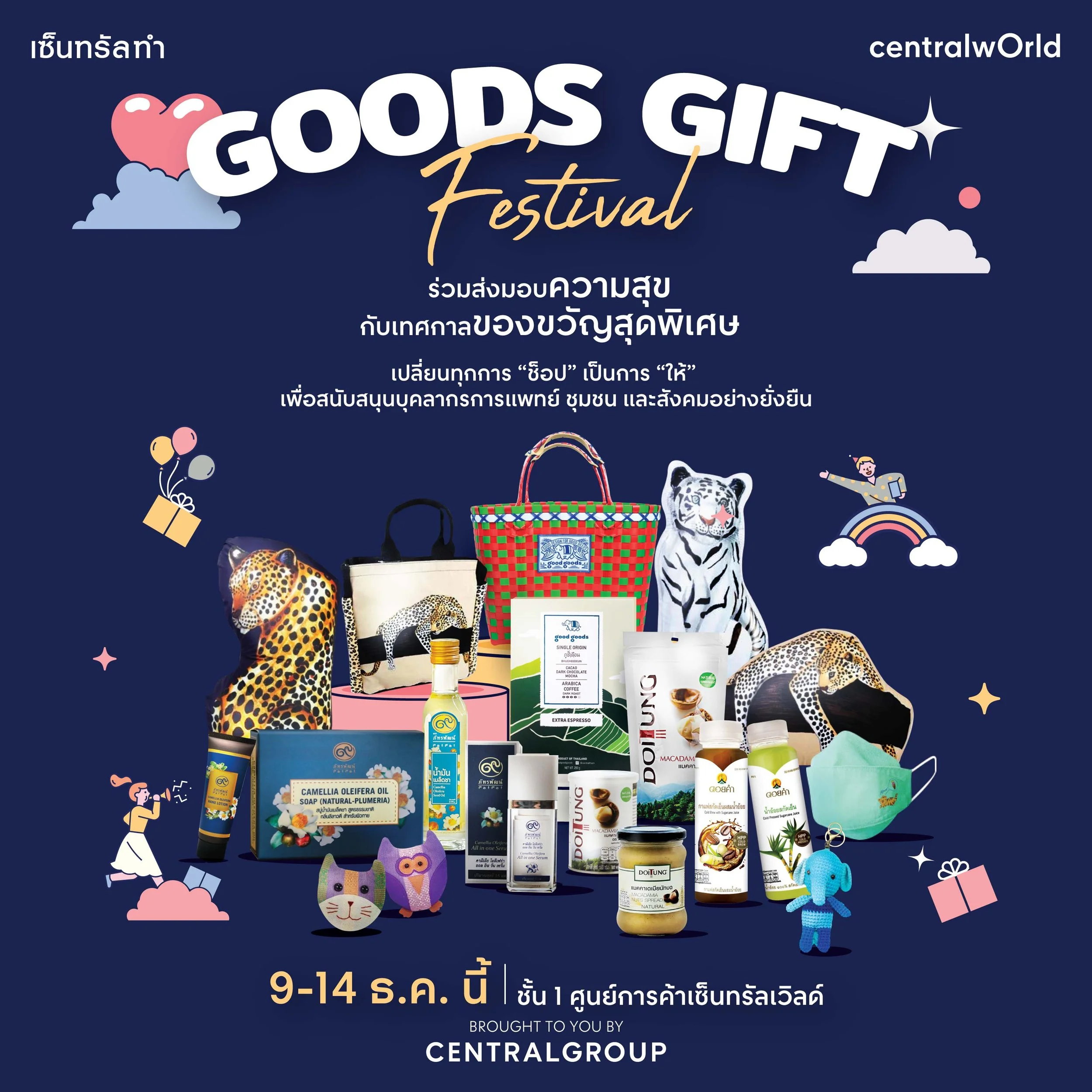 “กลุ่มเซ็นทรัล” ชวนช้อปความสุข ส่งมอบของขวัญรับลมหนาวในงาน “เทศกาลของขวัญ: GOODS GIFT FESTIVAL 2021” เปลี่ยนทุกการ “ช้อป” เป็นการ “ให้” ระหว่างวันที่ 9-14 ธันวาคม 2564 ณ ศูนย์การค้าเซ็นทรัลเวิลด์ พบกับสินค้าไฮไลท์ นำโดย สินค้าคอลเลคชั่นล่าสุด กับชุดของขวัญจัดทำพิเศษ จาก มูลนิธิส่งเสริมศิลปาชีพในสมเด็จพระนางเจ้าสิริกิติ์ พระบรมราชินีนาถ, มูลนิธิอุทกพัฒน์ฯ, มูลนิธิสายใจไทยฯ, ภูฟ้า, ดอยตุง, 109, โครงการกำลังใจ, ภัทรพัฒน์, ดอยคำ, มูลนิธิภัทรมหาราชานุสรณ์ฯ, มูลนิธิอาสาเพื่อนพึ่ง (ภาฯ) ยามยาก ฯลฯ