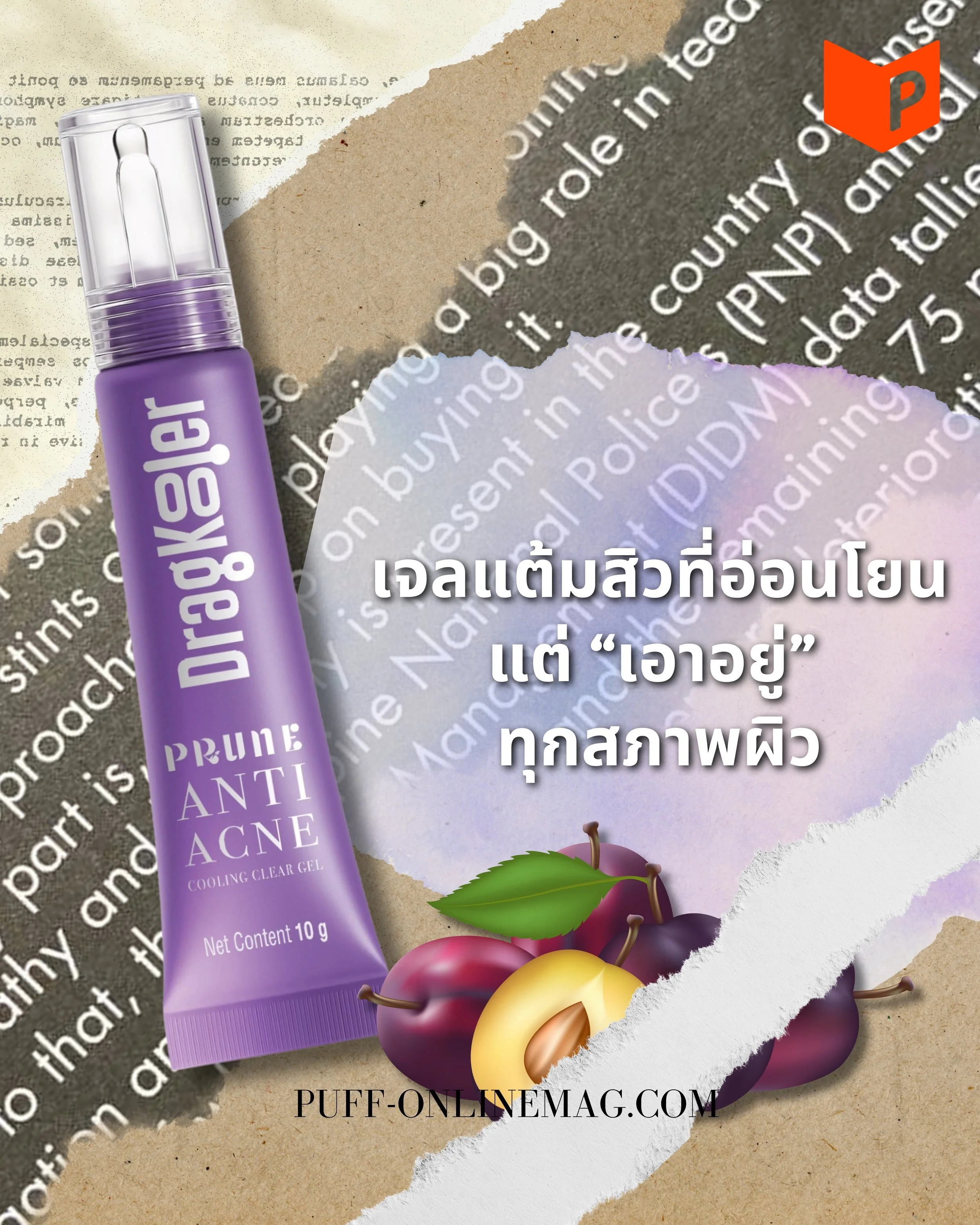 แก้ปัญหาสิวอย่างตรงจุดด้วย Dragkooler Prune Anti Acne Cooling Clear Gel เจลแต้มสิวสูตรเย็น บางเบา ซึมไว ไม่ทิ้งคราบ ผ่านการทดสอบว่าเห็นผลจริงภายใน 48 ชั่วโมง อ่อนโยนต่อผิวแพ้ง่าย ปราศจากแอลกอฮอล์ น้ำหอม และสเตียรอยด์